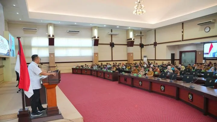 Terkini, Makassar - Kepala Dinas Komunikasi, Informatika, Statistik, dan Persandian (Kominfo-SP) Provinsi Sulawesi Selatan, A Winarno Eka Putra, menyambut penyelenggaraan Bimbingan Teknis Penyelenggaraan Urusan Persandian yang digelar Badan Siber dan Sandi Negara (BSSN) di Ruang Rapat Pimpinan Kantor Gubernur Sulsel, Jalan Urip Sumoharjo No 269, Makassar, Selasa, 19 Agustus 2025.