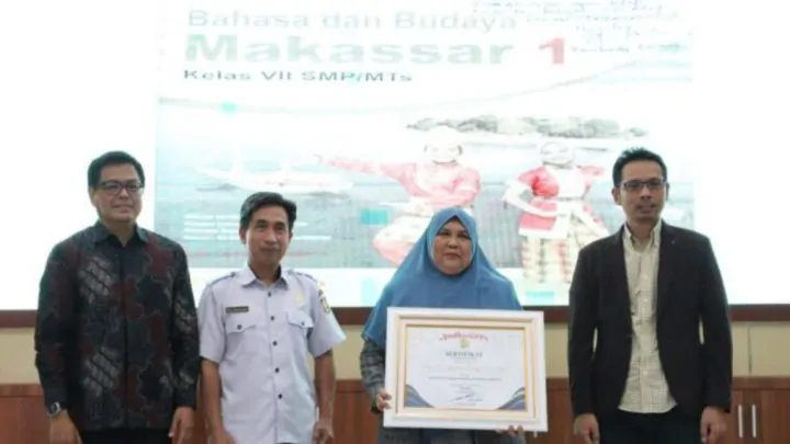 Peluncuran buku berlangsung di Gedung BBPMP Sulawesi Selatan, Jalan AP Pettarani, Makassar, Rabu 15 April 2026, dirangkaikan dengan seminar dan sosialisasi pembelajaran Bahasa Makassar sebagai bahasa ibu di sekolah.