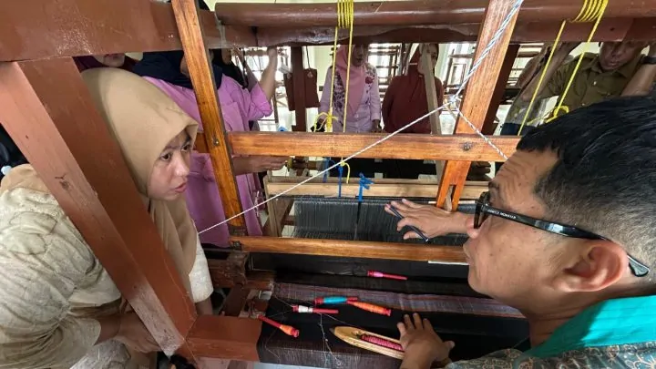 Dalam kegiatan tersebut, belasan pengrajin tenun mendapatkan pelatihan langsung dari praktisi dan pengusaha kriya nasional, Bustan Effendi yang akrab disapa Mas Vinto.