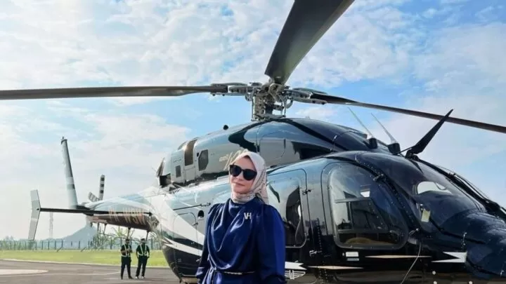 Helikopter, pakaian dan beberapa aksesoris disiapkan pihak Vanilla Hijab sebagai penyelenggara. Istri Bupati Gowa itu menjadi salah satu influencer yang diundang saat itu.