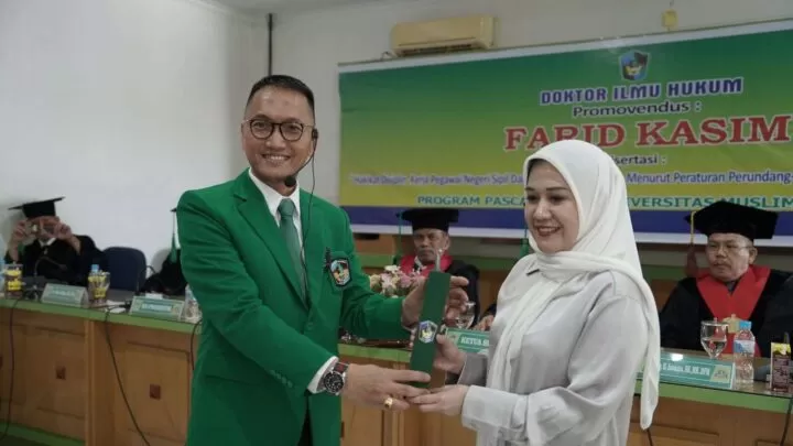 Terkini.id, Makassar - Farid Kasim Judas atau yang akrab disapa FKJ meraih gelar doktor bidang ilmu hukum di Universitas Muslim Indonesia (UMI), Kamis 21 Desember 2023.