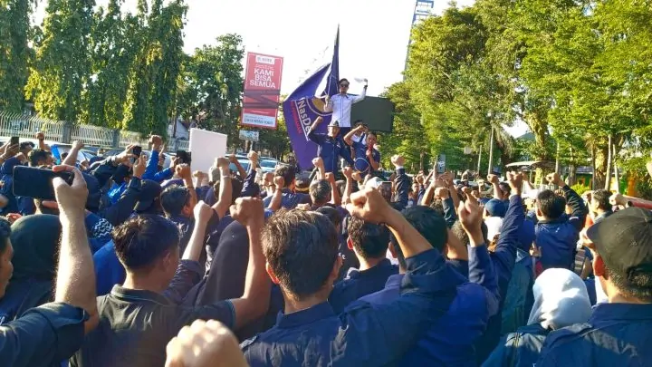 Terkini, Makassar – Ratusan kader Partai NasDem Sulawesi Selatan menggelar aksi unjuk rasa di depan Monumen Mandala, Jalan Jendral Sudirman Kota Makassar, Kamis 16 April 2026.