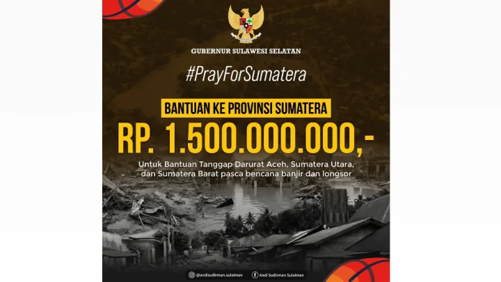Menyusul bencana banjir dan longsor yang melanda sejumlah wilayah di Pulau Sumatera dalam beberapa hari terakhir, Gubernur Sulsel Andi Sudirman Sulaiman menyalurkan bantuan keuangan tanggap darurat senilai Rp1,5 miliar.