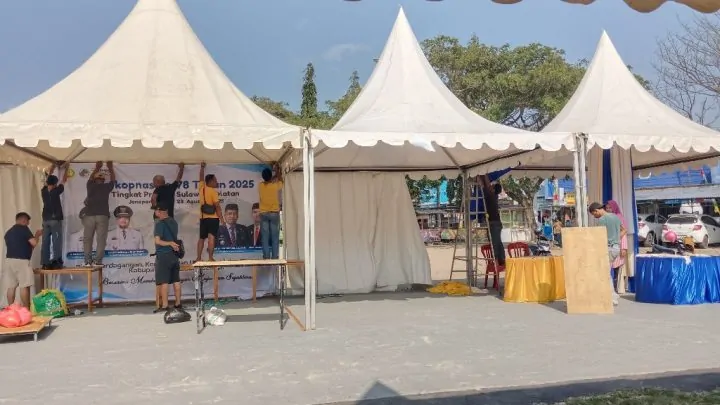 Terkini, Jeneponto – Menjelang pembukaan peringatan Hari Koperasi Nasional (Harkopnas) ke-78 tingkat Provinsi Sulawesi Selatan, yang akan dipusatkan di Kabupaten Jeneponto, panitia pelaksana terus mematangkan persiapan. Stand peserta dari 24 kabupaten/kota sudah mulai ditata dan dihias oleh masing-masing perwakilan daerah.