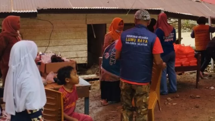 Terkini, Luwu - Badan Pengurus Wilayah (BPW) Kerukunan Keluarga Luwu Raya Provinsi Sulawesi Selatan (KKLR Sulsel) mendistribusikan paket nasi kotak kepada para warga terdampak di Desa Kadundung, Kecamatan Latimojong, Kabupaten Luwu, Kamis 23 Mei 2024.