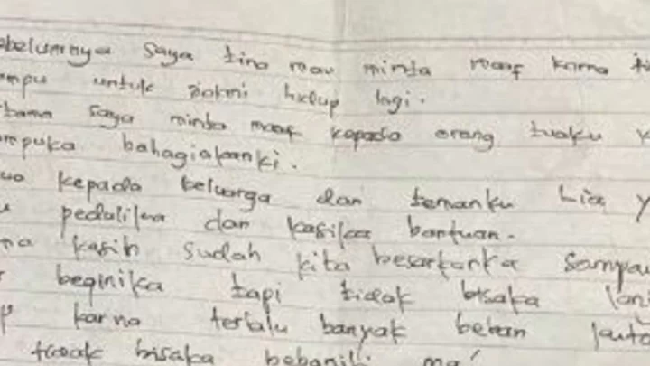 Berikut surat wasiat berisi pesan terakhir Agus Kartina untuk orang tuanya: