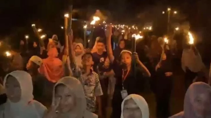 Terkini.id, Pangkep - Masyarakat sekitar Masjid Al-Ma'muman Dusun Harapan Baru Desa Alesipitto, Kecamatan Ma'rang, Kabupaten Pangkep, pada Selasa malam, 18 Juli 2023, melakukan pawai obor untuk menyambut Tahun Baru Islam 1 Muharram 1445 Hijriah.
