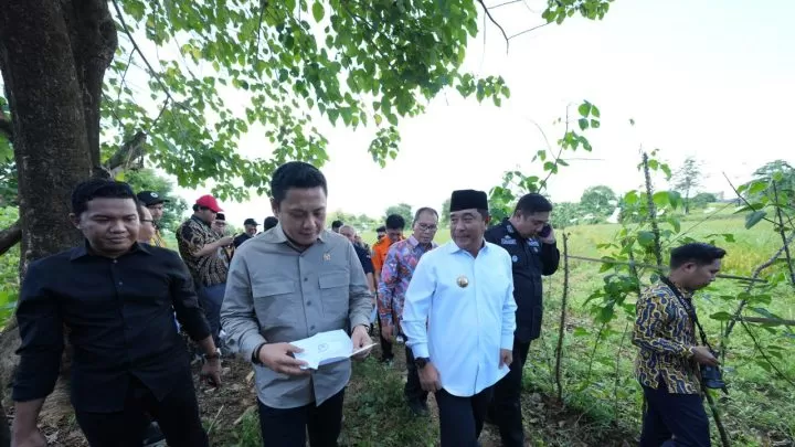 Terkini.id, Makassar - Untuk memastikan kelancaran proyek yang diinstruksikan langsung oleh Presiden Jokowi ini. Penjabat Gubernur Sulsel Bahtiar Baharuddin mendampingi rombongan Komisi V DPR RI untuk meninjau lokasi rencana pembangunan stadion sepak bola, di Sudiang, Kecamatan Biringkanaya, Kota Makassar, Jumat 5 April 2024.