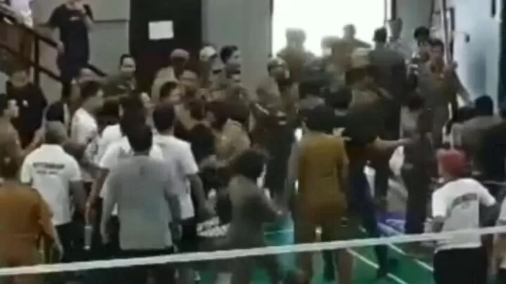 Terkini.id, Makassar - Pertandingan bulutangkis dalam rangka HUT Sulsel ke-354 dan HUT Kemerdekaan RI, di Gedung Olahraga Kantor Gubernur, diwarnai keributan, Selasa 1 Agustus 2023.