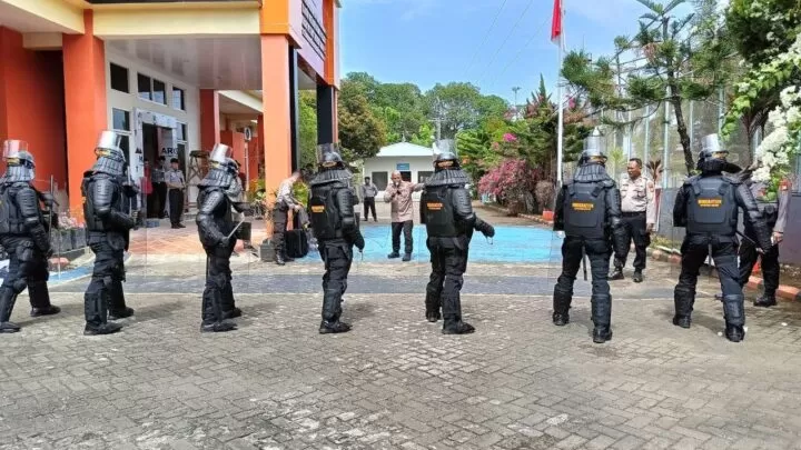 Selanjutnya, perwakilan 10 orang anggota pengamanan berlokasi di Lapangan Rudenim melakukan pengenalan alat dan penggunaannya serta tata cara baris berbaris dengan penggunaan alat pengendalian massa sukses dipraktekkan secara sempurna.
