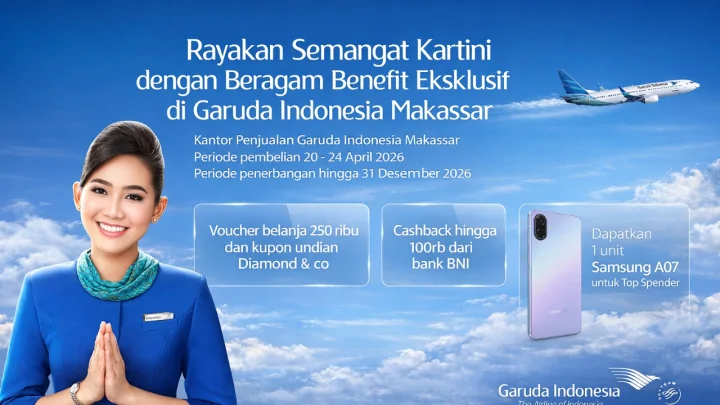 Terkini, Makassar — Dalam rangka memperingati semangat Hari Kartini, Garuda Indonesia melalui Kantor Penjualan Makassar menghadirkan program promo spesial dengan berbagai benefit eksklusif bagi pelanggan, termasuk keuntungan tambahan bagi pengguna layanan perbankan.