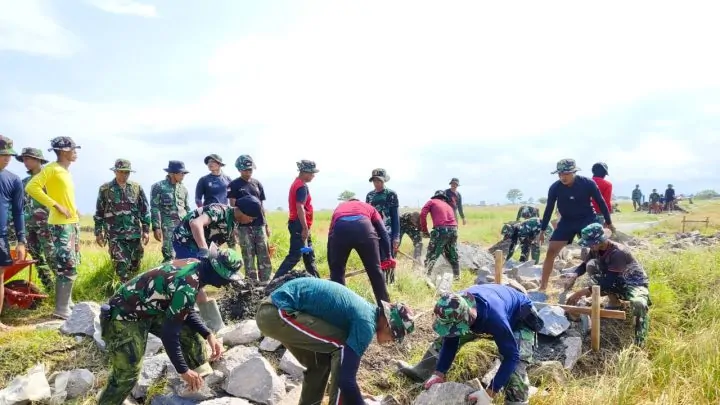 Sejak pagi hari, tampak pemandangan yang menyentuh hati. Tidak ada sekat pangkat maupun perbedaan kedudukan. Personel TNI, anggota Polri, dan warga masyarakat bekerja berdampingan. Ada yang mengangkut batu, ada yang menyusunnya rapi sebagai pondasi jalan, ada pula yang meratakan tanah dan memadatkan lapisan dasar. Keringat yang membasahi tubuh mereka seolah menjadi tanda kasih sayang kepada tanah kelahiran, dan suara riuh pekerjaan menjadi irama indah persatuan.