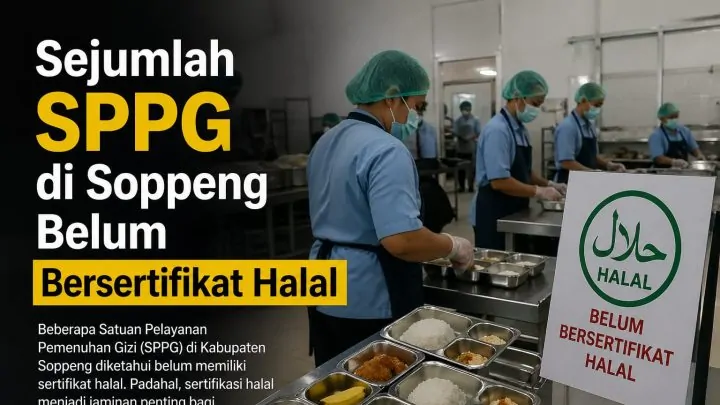 Terkini, Soppeng- Sejumlah Satuan Penyelenggara Pangan Gizi (SPPG) di Kabupaten Soppeng diketahui belum mengantongi sertifikat halal. Berdasarkan data dari Badan Penyelenggara Jaminan Produk Halal (BPJPH), masih terdapat beberapa SPPG yang belum memenuhi persyaratan sertifikasi tersebut.