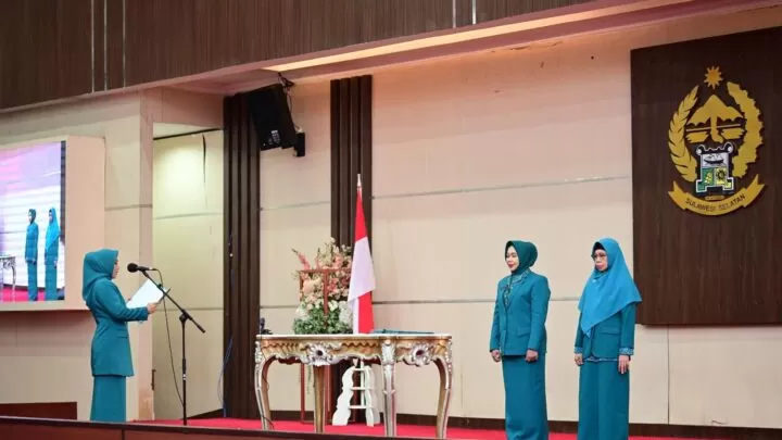 Terkini.id, Makassar - Pj Ketua TP PKK Sulsel, Sofha Marwah Bahtiar, melantik Siti Rabiah Baba sebagai Pj Ketua TP PKK Enrekang, dan Andi Heriani Rusli sebagai Pj Ketua TP PKK Parepare, di Ruang Pola Kantor Gubernur, Selasa 31 Oktober 2023.