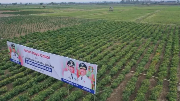Terkini.id, Wajo - Pemerintah Provinsi Provinsi (Pemprov) Sulsel dan Pemerintah Kabupaten Wajo kompak panen raya cabe untuk menekan angka inflasi, khusus di Provinsi Sulsel. Panen dilakukan di sawah tadah hujan, di Desa Loa, Kecamatan Tana Sitolo, Kabupaten Wajo. Sabtu 3 November 2023.