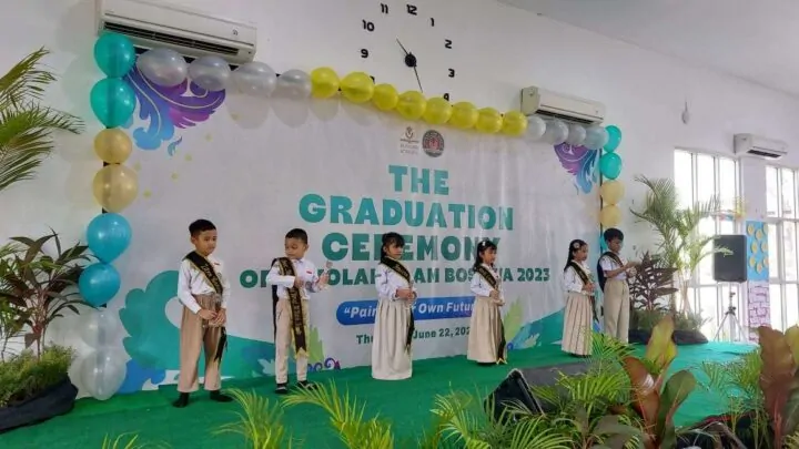 Terkini.id, Makassar - Sekolah Alam Bosowa menggelar upacara kelulusan untuk siswa-siswi TK B dan SD dengan mengusung tema “Paint Your Own Future”, Kamis 22 Juni 2023.